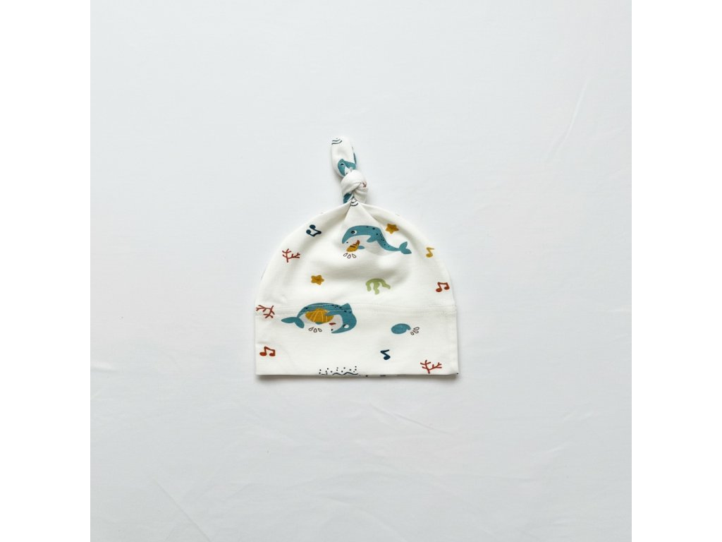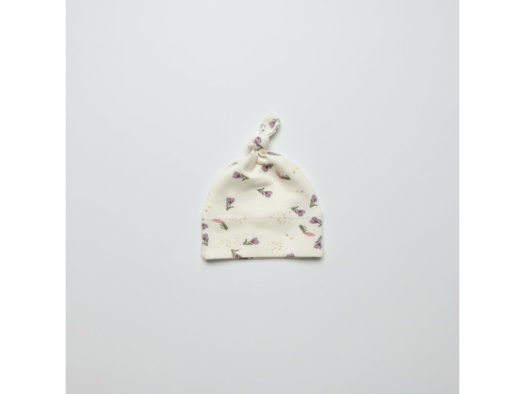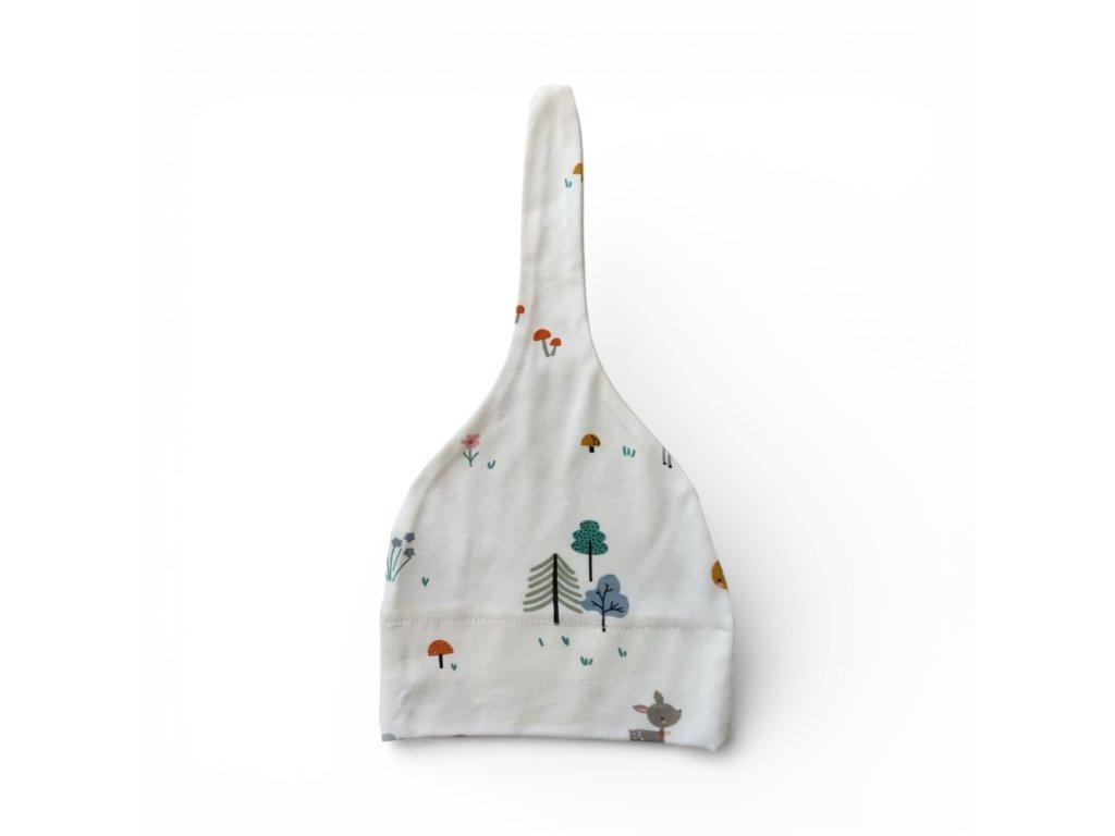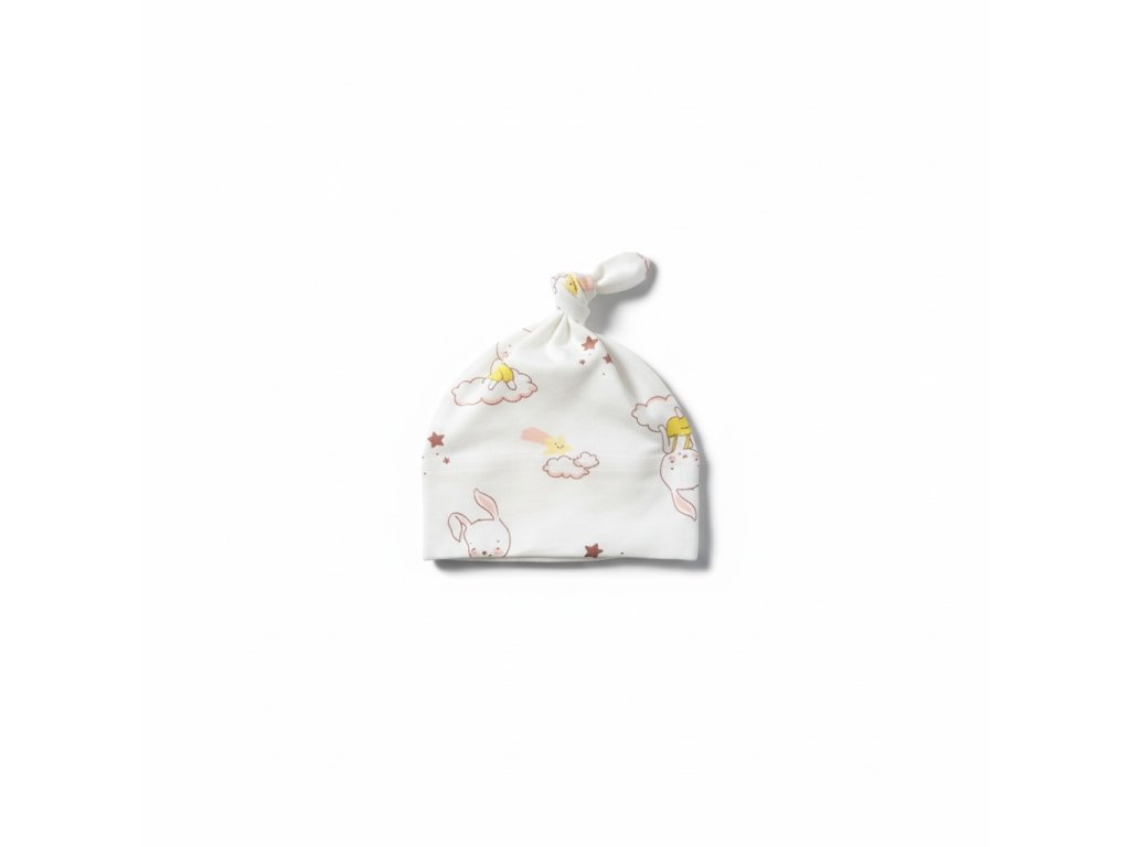 Weiche Neugeborenen-Knotenmütze aus angenehm zu tragendem Material 95 % Baumwolle und 5 % Spandex. Geeignet für Babys in der Größe 0–3 Monat