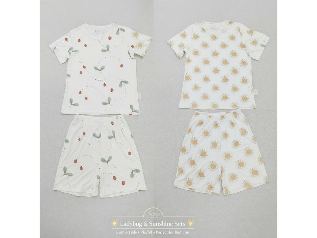 Magneticlove summer set of bamboo kids pyjamas – Summer Sun & Ladybugs in the Meadow