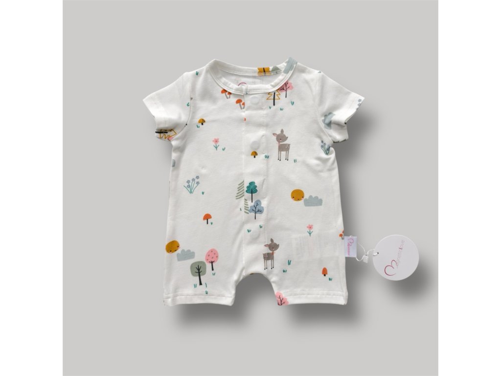 Letná dupačka Jelen – biele s magnetickým zapínaním a lesným vzorom